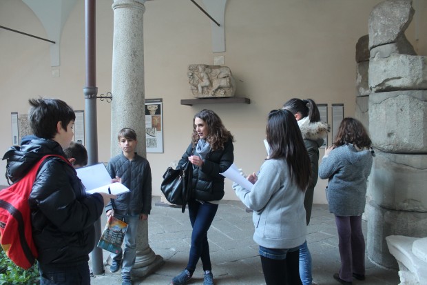 I nostri tutor, i primi fuoriclasse, nonché protagonisti degli itinerari dedicati alla conoscenza del territorio, hanno raccontato storie e misteri della Milano romana. Siamo partiti dal museo archeologico in corso Magenta dove ci siamo immaginati davanti al plastico com’era Milano capitale dell’Impero. I racconti e le domande ci hanno portato a visitare i resti del palazzo imperiale, a scovare i resti sotterranei del teatro romano, a percorrere la via circo per arrivare alla torre malsana, fino ad ammirare con il naso all’insù le splendide colonne di San Lorenzo . La mattinata si è conclusa con la visita allo splendido e nascosto parco dell’anfiteatro romano.