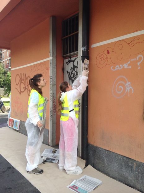 I primi di Giugno due classi prime della scuola Borsi hanno ripulito dai graffiti vandalici il Mercato Comunale di via Chiarelli a Lampugnano.